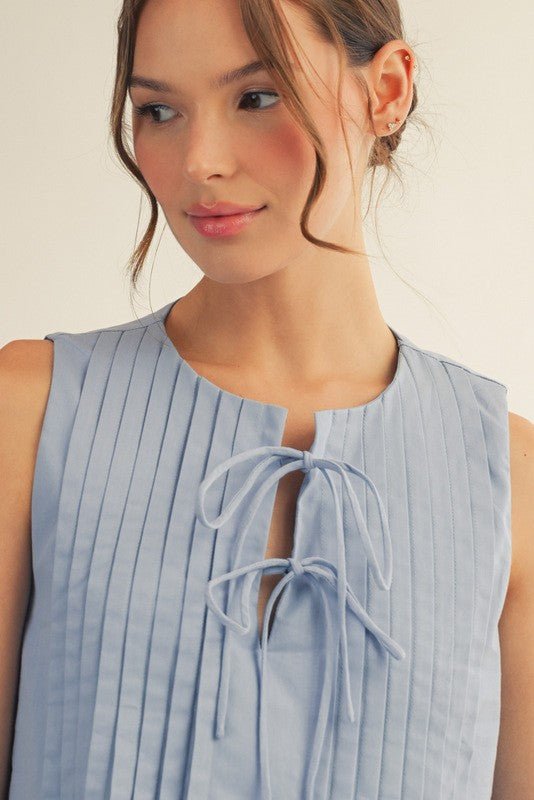 Sleeveless Pintuck Mini Dress