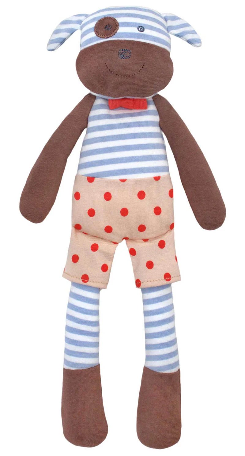 These squeezable plush buddies are made with soft organic cotton jersey, a built-in rattle, and adorable tactile details that highlight each critter’s playful personality.